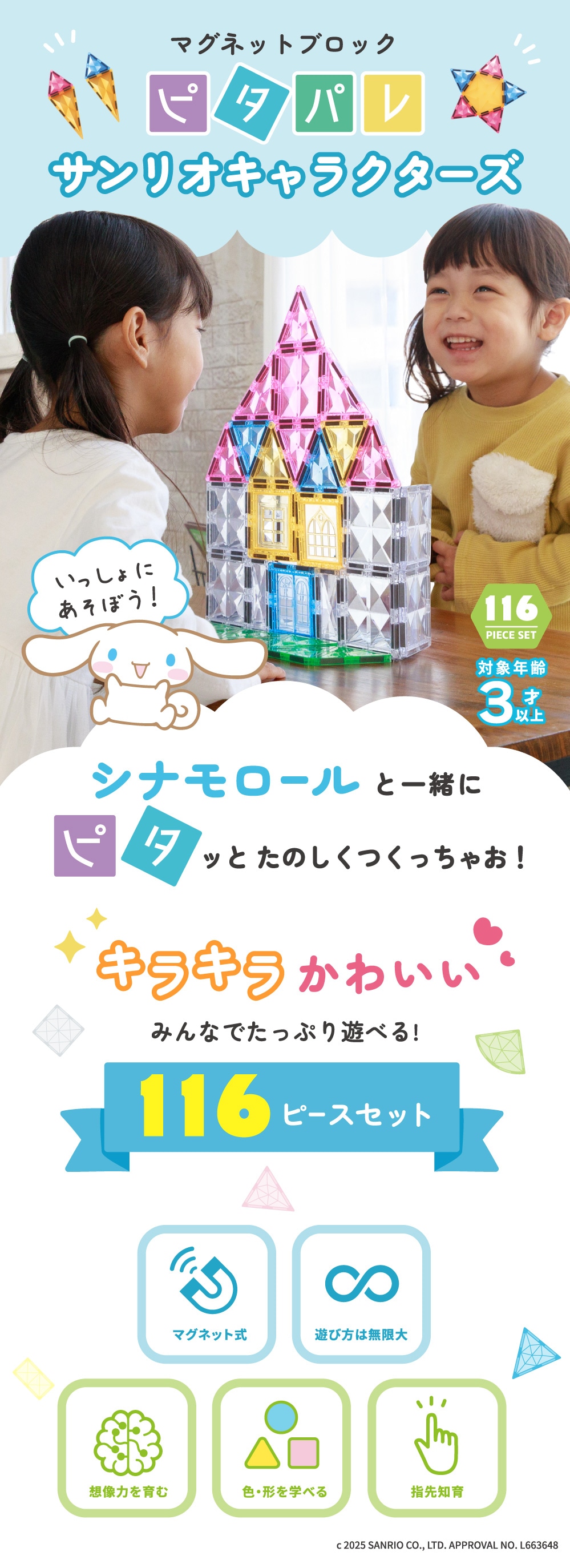 【公式】ピタパレ サンリオキャラクターズ シナモロール|マグネットブロック 磁石おもちゃ 知育玩具 パズル