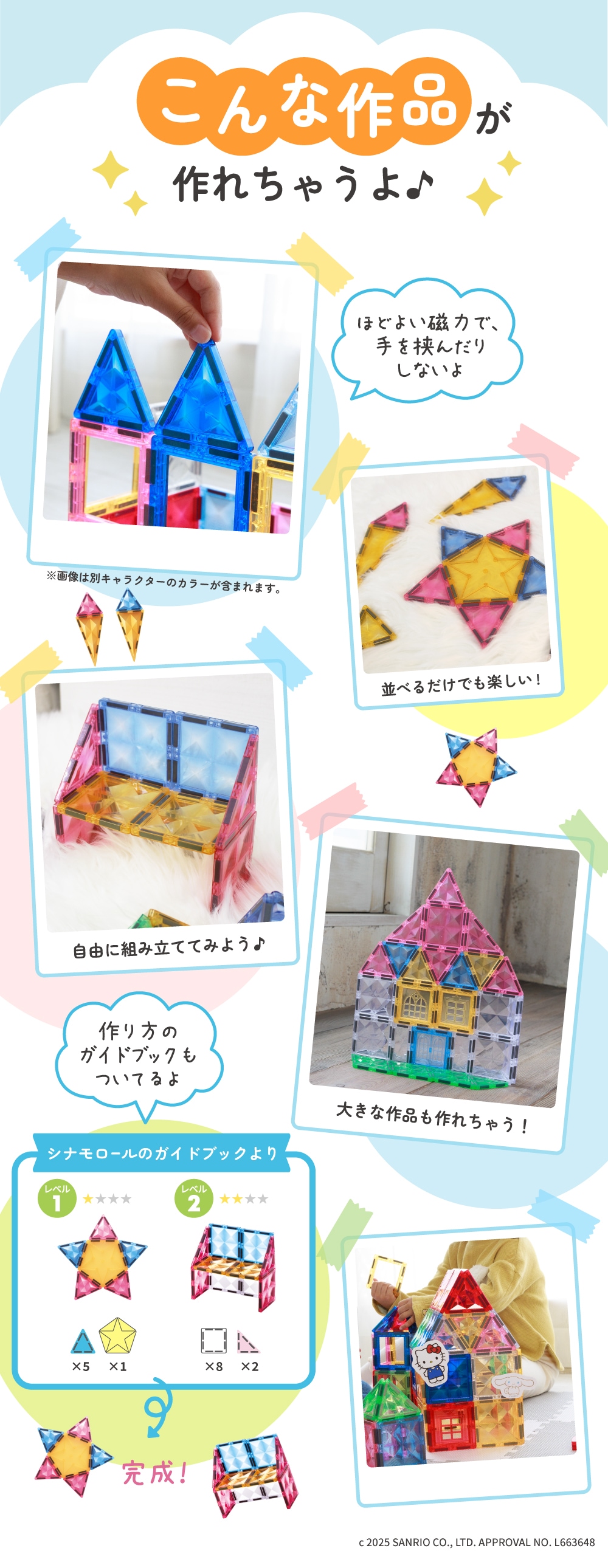 ハローキティ・シナモロール・マイメロディ・クロミの4キャラクターがマグネットブロックおもちゃに!それぞれのキャラクターをモチーフにしたキラキラ可愛い作品が作れちゃう♪