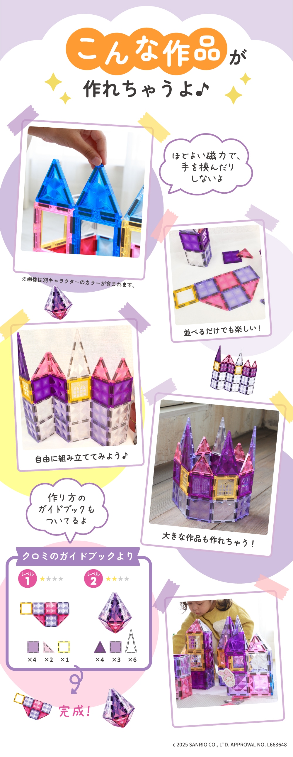 ハローキティ・シナモロール・マイメロディ・クロミの4キャラクターがマグネットブロックおもちゃに!それぞれのキャラクターをモチーフにしたキラキラ可愛い作品が作れちゃう♪