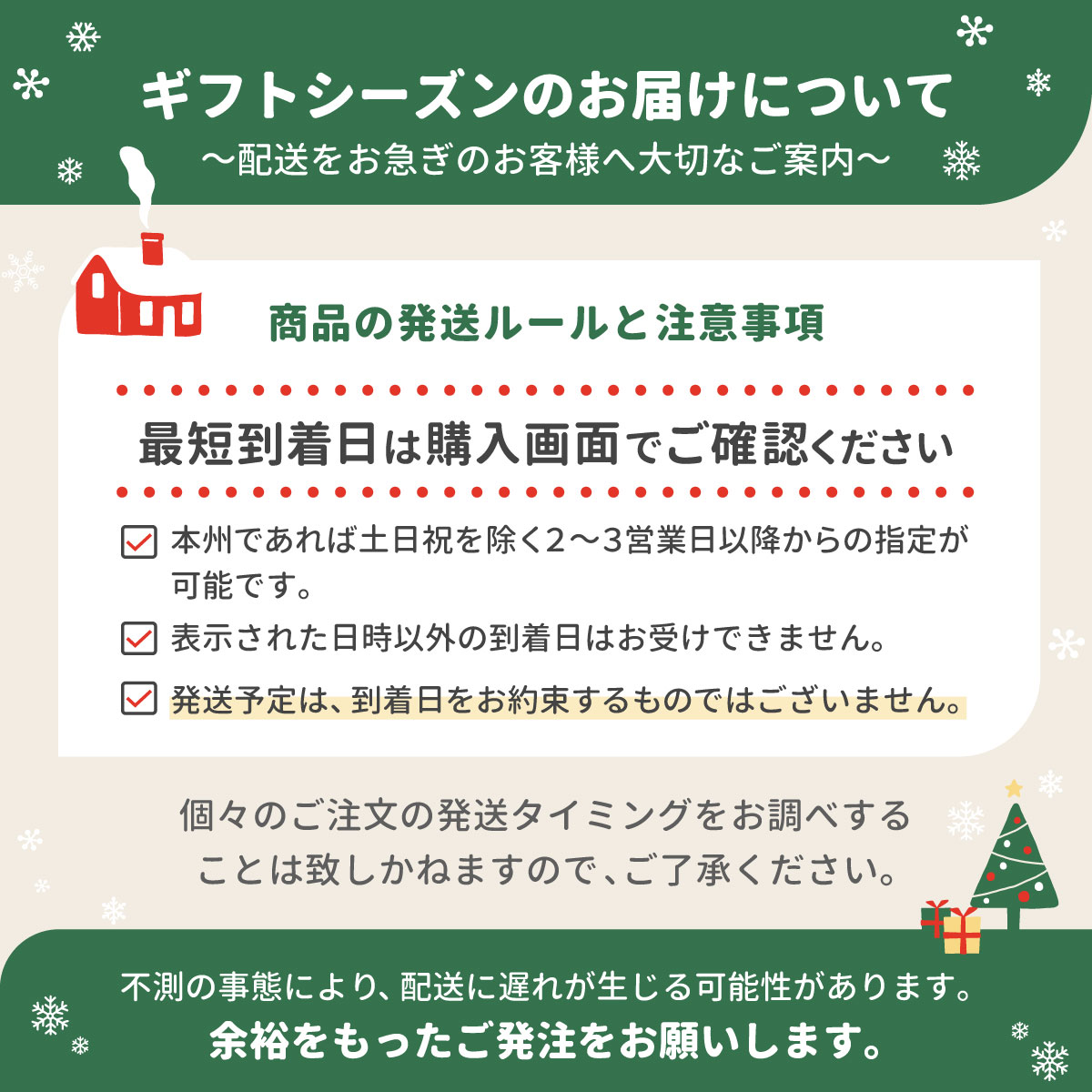 クリスマスシーズンのお荷物お届けについてご案内させていただきます。