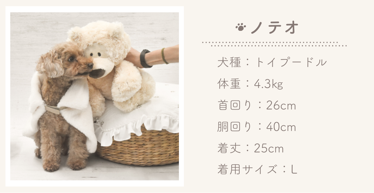 商品の品質には万全を期しておりますが、ペット⾐類について企画サイズと仕上りサイズでは、1〜2㎝の誤差が⽣じる場合がございます。
